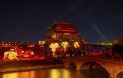清晨推窗,运河把薄雾当纱披在肩头,摇橹船剪开一线水纹,像谁用毛笔在宣纸上点出第一笔青绿。日升高处,粉墙黛瓦倒映成水下街市,柳枝垂进水里,风一过,整条河都在轻轻眨眼。黄昏灯亮,灯笼的红晕爬上桥拱,把夜色烫出一个温柔的洞,让过客一眼望进江南的旧梦——江北水乡,原是把长江以南的烟雨偷来,在鲁南的月光里重新铺陈。锣声三下,"乾隆"御驾自码头缓步而来,宫女彩扇摇出花海,八旗侍卫执戟列阵,脚步踏得石板回声铿锵。沿街百姓相迎,高呼"万岁",让今人在烟火与喝道声里,与"乾隆"并肩走过一段可以触摸的朝代。隔帘一盏白灯,牛皮人儿瞬间醒来。刀马旦枪缨翻飞,老生须髯颤抖,幕后银签上下,像操纵时间的指针。一线灯光穿过雕空的牛皮,把百年旧戏投在布幕上——方寸戏台里,锣鼓替心跳打节拍,剪成活动的年画。